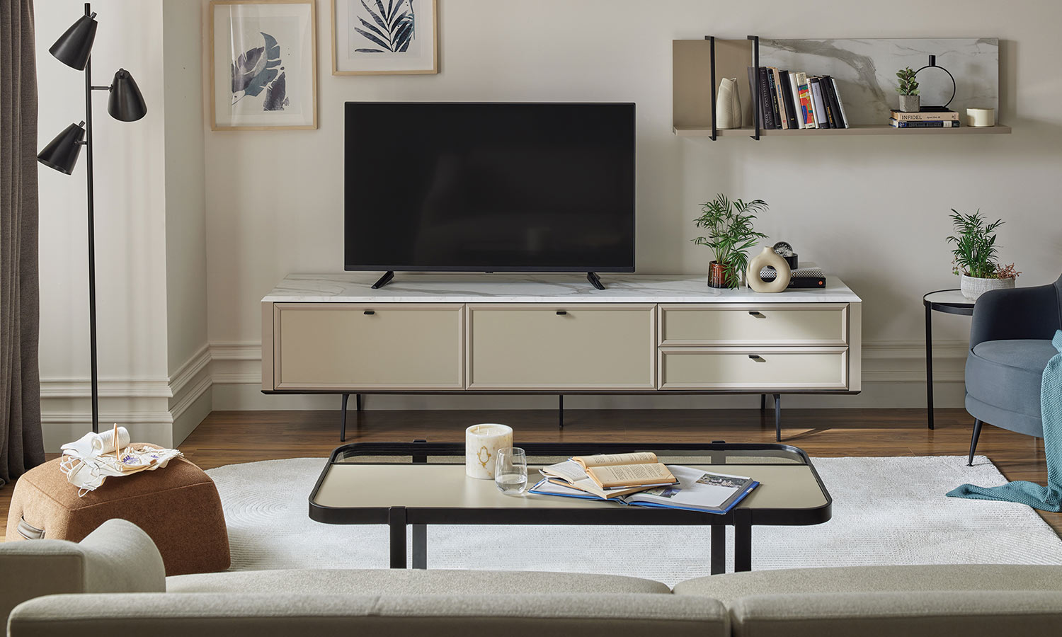 Offering functional convenience with its useful shelves and large storage areas, Agata TV Unit allows you to create your ideal living space through its alternative modules.