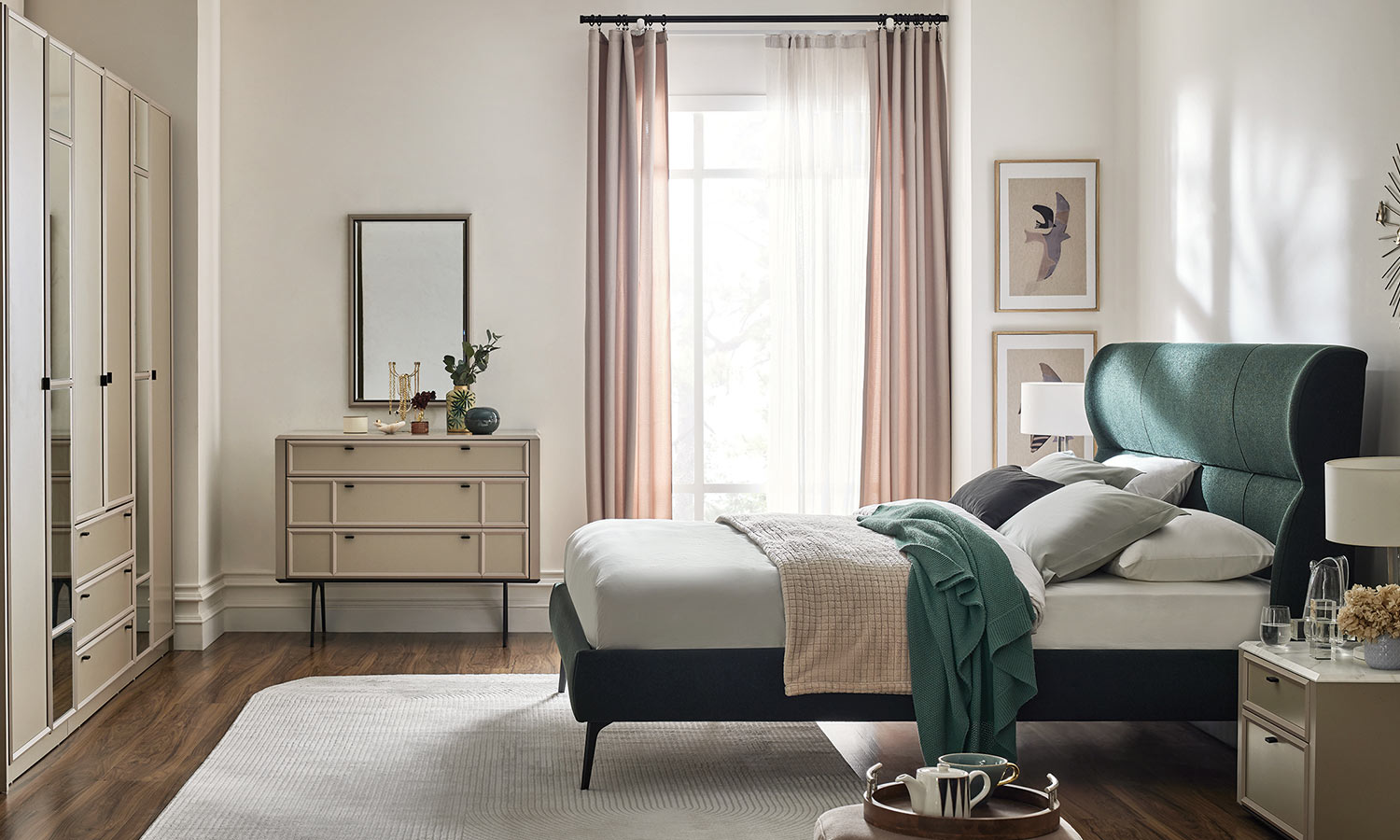 Agata Bedroom combines comfort with aesthetics through its functional details and modern lines, while offering a wide storage space that includes useful wardrobe alternatives, chest of drawers and nightstands.