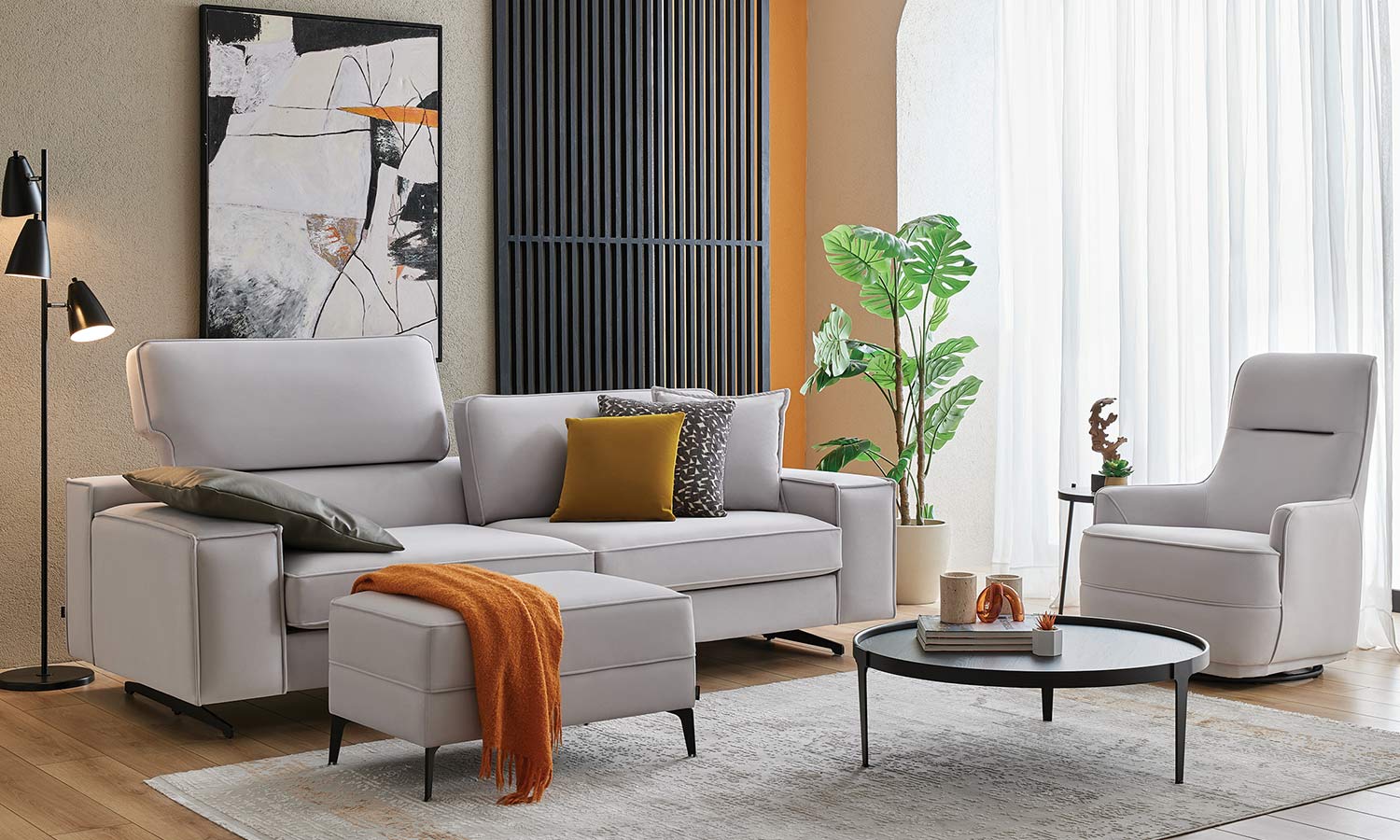 The bed mechanism of the 3-seat sofa bed offers the opportunity to be transformed into a bed for your guests, while the differently designed swivel-legged armchair modules provide flexible use. Designed as a modern TV chair, the high-backed armchair provides a comfortable seating experience as well as an aesthetic appearance to the space. The living room Ottoman, which can also be used as a lounge module together with the armchair, redefines your resting area.