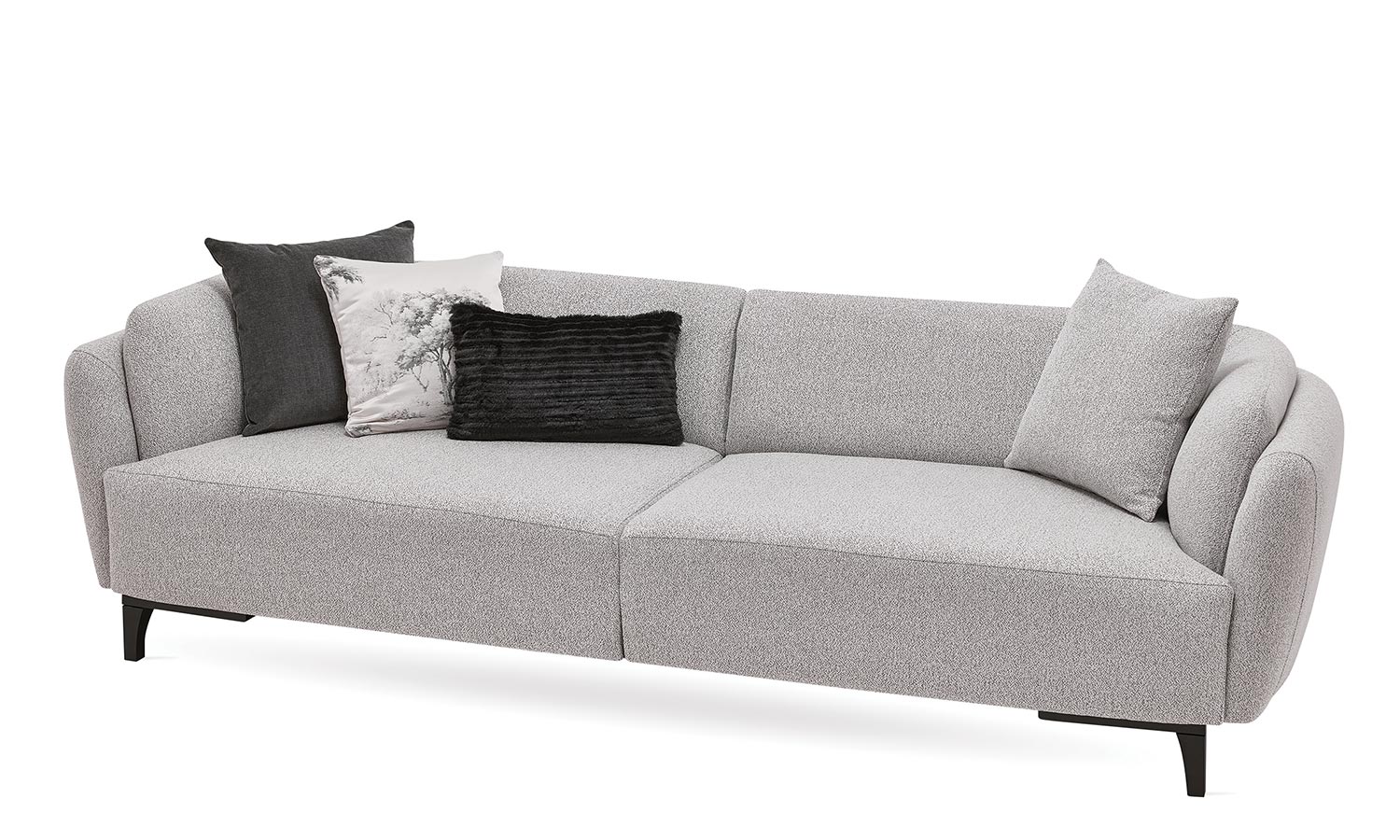 Drawing attention with its modern design, the 4-seat sofa of the Krista Living Room provides extra spacious seating experience and personalizes your living space with different fabric alternatives. In addition to providing practical experience with its easy-to-clean texture, the design of black wooden legs improves the elegance. Krista Sofa, with every detail carefully designed, combines aesthetics with comfort.