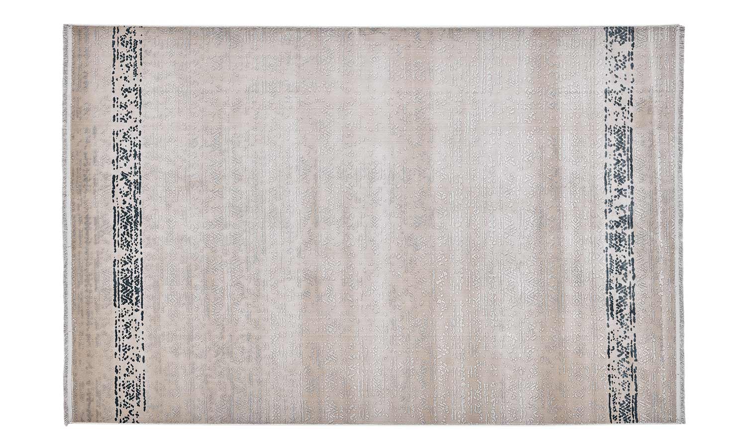 Monika Carpet's unique design that combines modern and ethnic style with the warmth of beige color pleases the eye. It adds an exquisite ambiance to your space thanks to its embossed form with navy blue transitions.