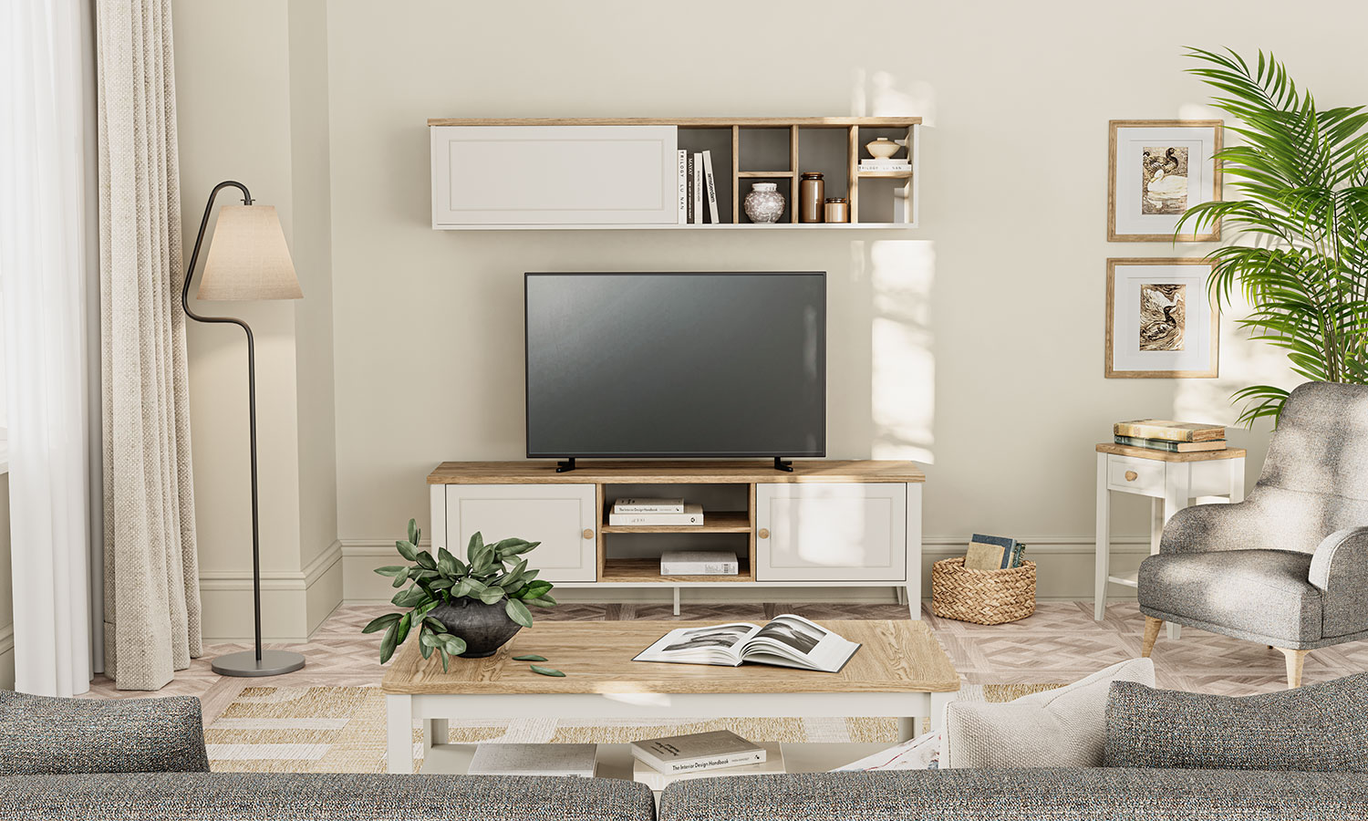 TV Unit (Large) + Upper Cabinet with Glass Doors + Upper Cabinet with Doors