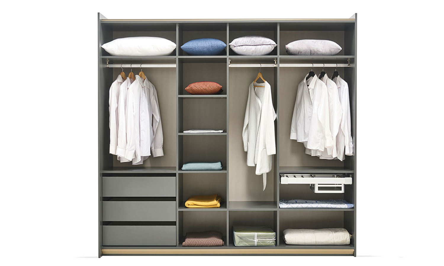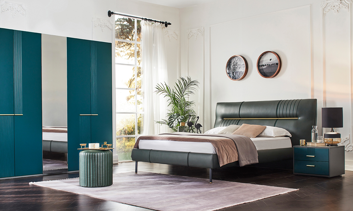 Contemporary lines, an impressive visuality. Giving peace with the naturalness and simplicity of the green colour, Greeny Bedroom complements the linear details on the door surfaces with golden lacquered handles. Offering a 6-door wardrobe with folding doors and two other wardrobe options, Greeny Bedroom makes its contemporary style a stylish presentation with a headboard that captives with stitch and accessory details. It promises to create a special space for you with a custom-designed mirror and an ottoman that complements the elegant dressing table.