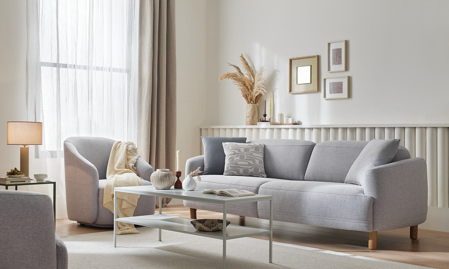 Offering a spacious environment with its high leg design, Kozy Living Room stands out with its comfortable seating and elegant details. The bed mechanism of the the 3-seat sofabed caters to your guests' practical needs, while the armchairs with flower patterns highlight the bohemian texture. Fabrics in earth tones bring the collection's organic vibe into your living room.
