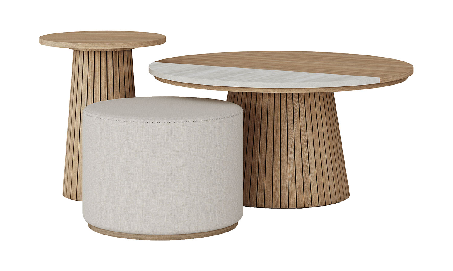 Harmony of Wood and White Color Puerta Coffee Table Series offers alternatives suitable for your personal tastes and needs with its tile-patterned coffee table with traditional lines as well as coffee table options that offer the harmony of wood and white color combination. The travertine pattern used on the coffee table reveals its aesthetics. The ottoman compatible with the series stands out as a complement to your living room.