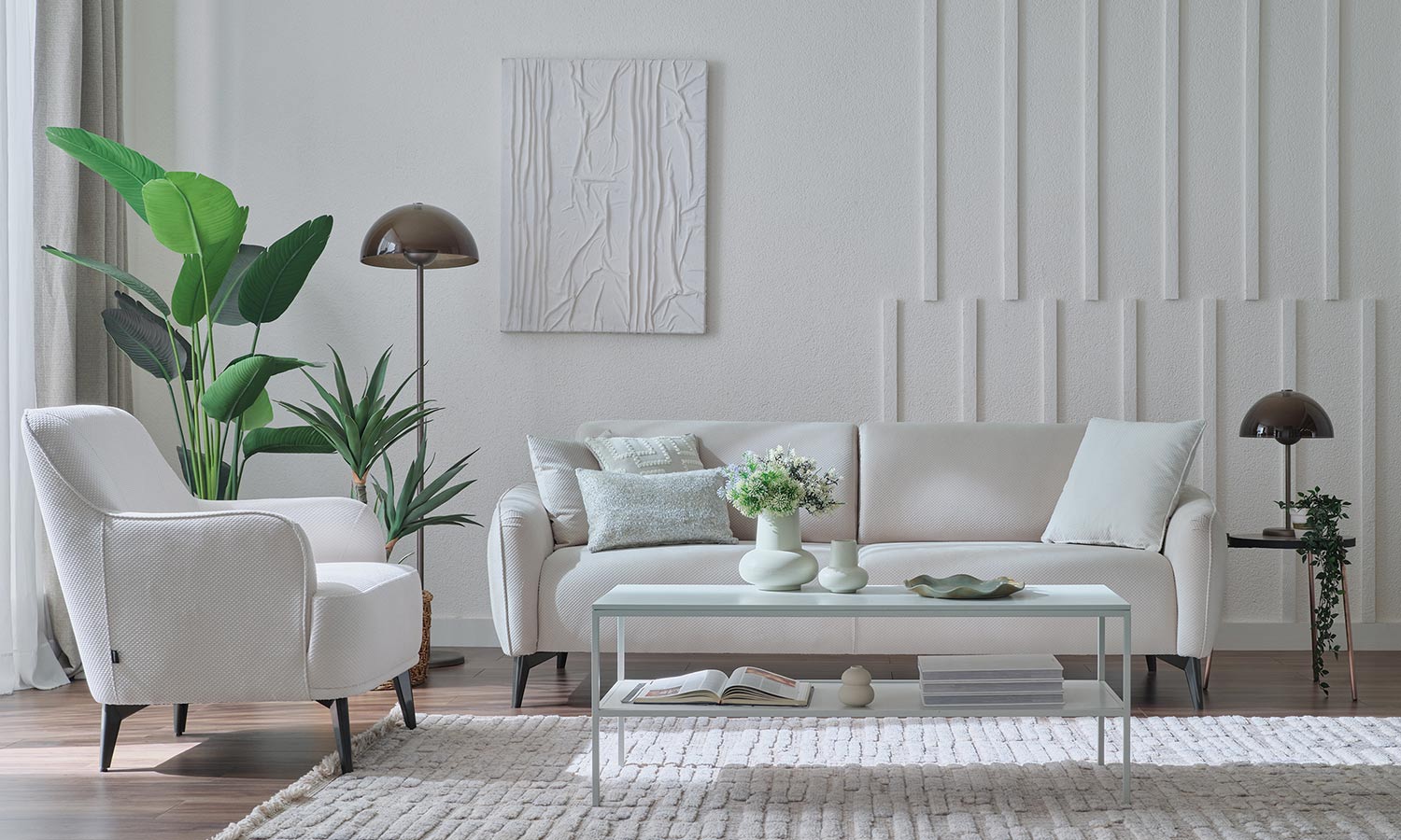 Offering comfortable seating and modern design, Agora Living Room provides a functional use with its 3-seat and 2.5-seat sofa alternatives featuring easy-to-open/close adjustable backrest mechanism. High leg structure in anthracite and walnut color create a spacious environment. Agora offers long-lasting use with its easy-to-clean linen and velvet fabric texture.