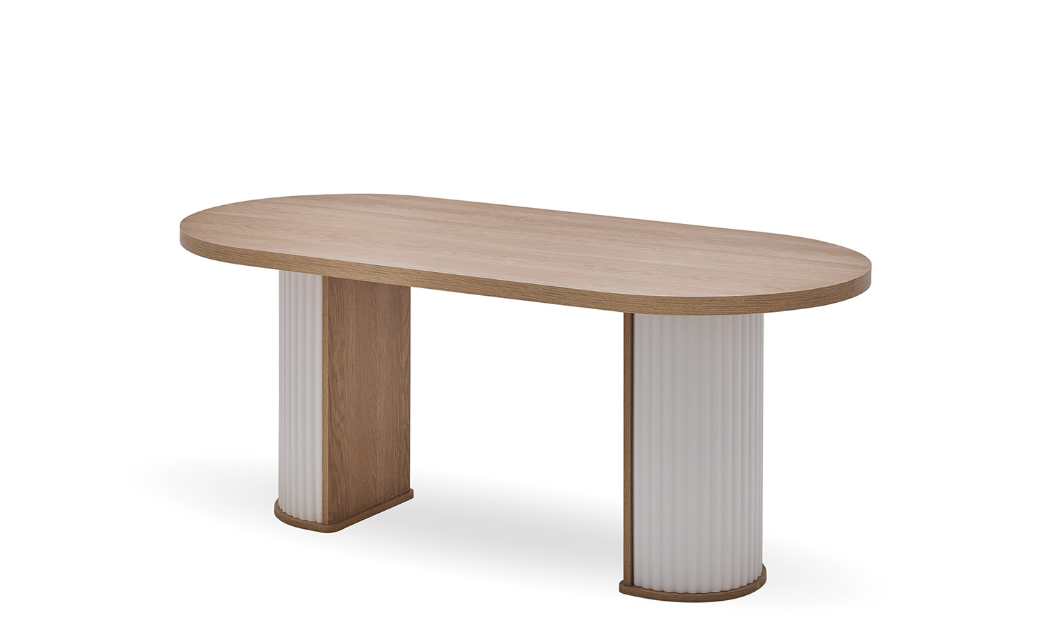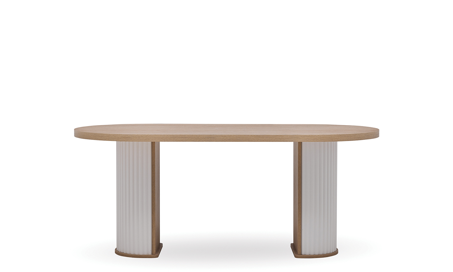 Oval lines and arch details give the Kozy Dining Room a sense of motion, while the beige and oak textured surfaces offer a tranquil environment. Your dwelling will exude a contemporary take on bohemian flair with the floral patterned fabrics used for chairs and benches. In addition to serving its practical purpose, the console mirror also adds visual dimension to the space.