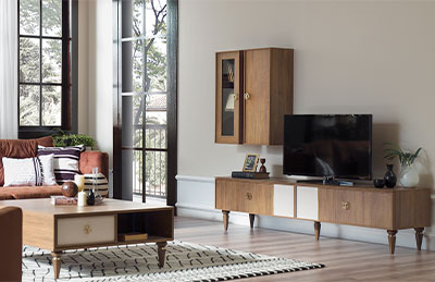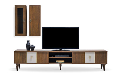 TV Unit (Large) + Upper Cabinet with Glass Doors + Upper Cabinet with Doors