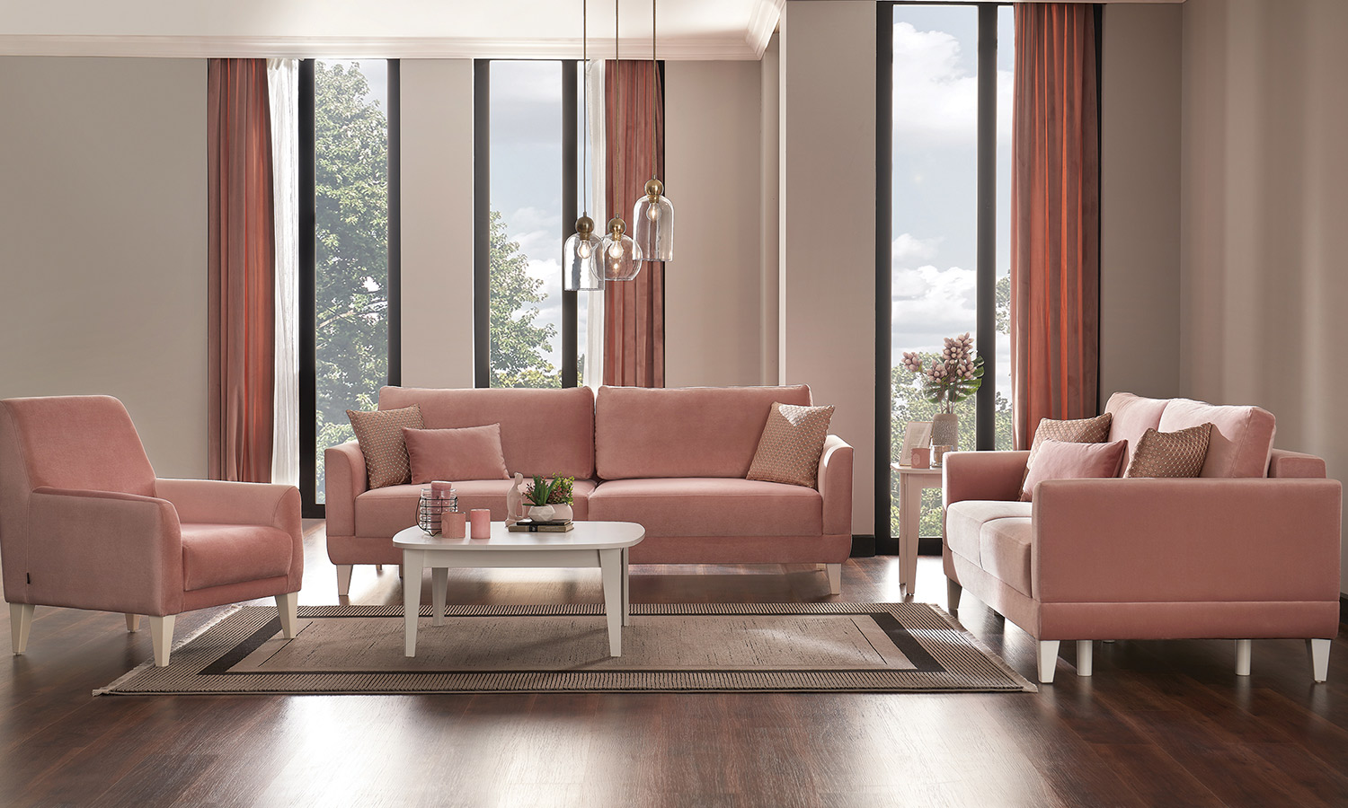 Deco Living Room stands out with its comfortable seating area that supports the back. Deco Living Room is a product of Sofayat Living Room Series that draws attention to functionality and ease of use in sofas. The Sofayat provides you and your guests the comfort of a real bed with its feature to turn into an extra large bed. Its storage feature, which gives you an extra area of use, provides you the advantage of achieving a neat, modern, and larger living space. Rich fabric combinations offer various alternatives with white, walnut, and black leg color alternatives.