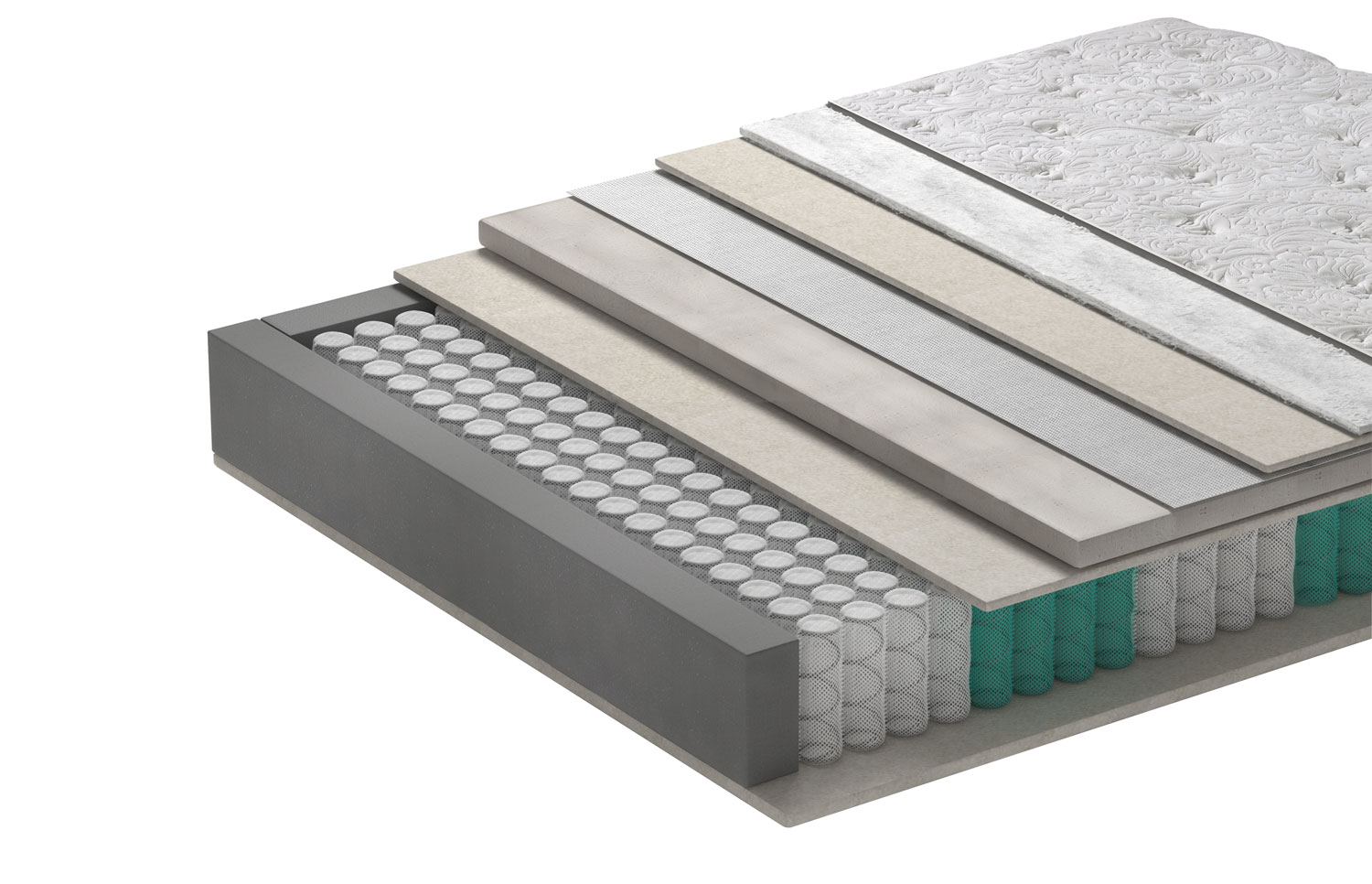 Memory sponge Visco Foam protects the natural curve of the spine and I-Rhtyhm fabric, which emits negative ions, helps to start getting fit in the morning. The 7-Zone Pocket spring system can support the body's weight zones and takes shape according to body ergonomics. Hybrid Touch combines advanced technologies required for a healthy and comfortable sleep.