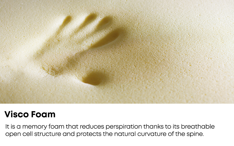 • Visco Foam : It is a memory sponge that helps maintain the natural curve of the spine.