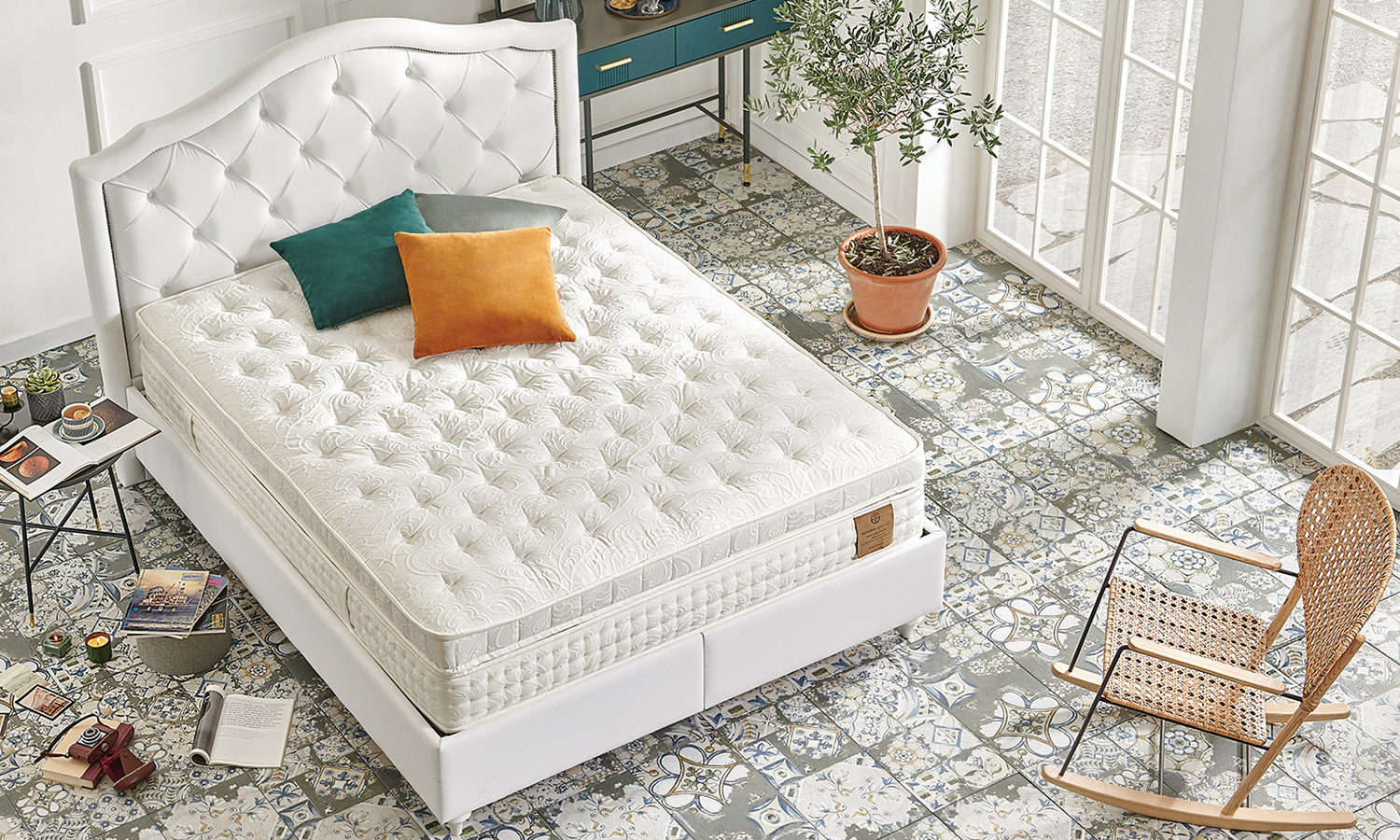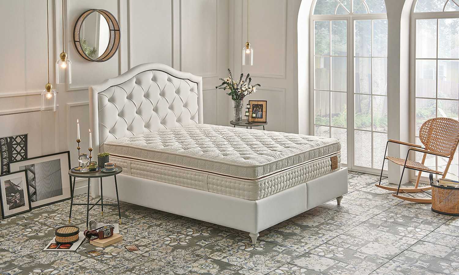 Double Decker spring system consisting of micro pocket springs that embrace the body softly and 5 Zone pocket springs with special firmness level supporting different body weight areas; Box Pillow-Top designed pad, offering unmatched supreme comfort on the sleeping surface; Dynamic Support mattress, which combines Ultra Fresh protection with superior features in mattress technology, which helps prevent bad odours, is just for those who want the best.