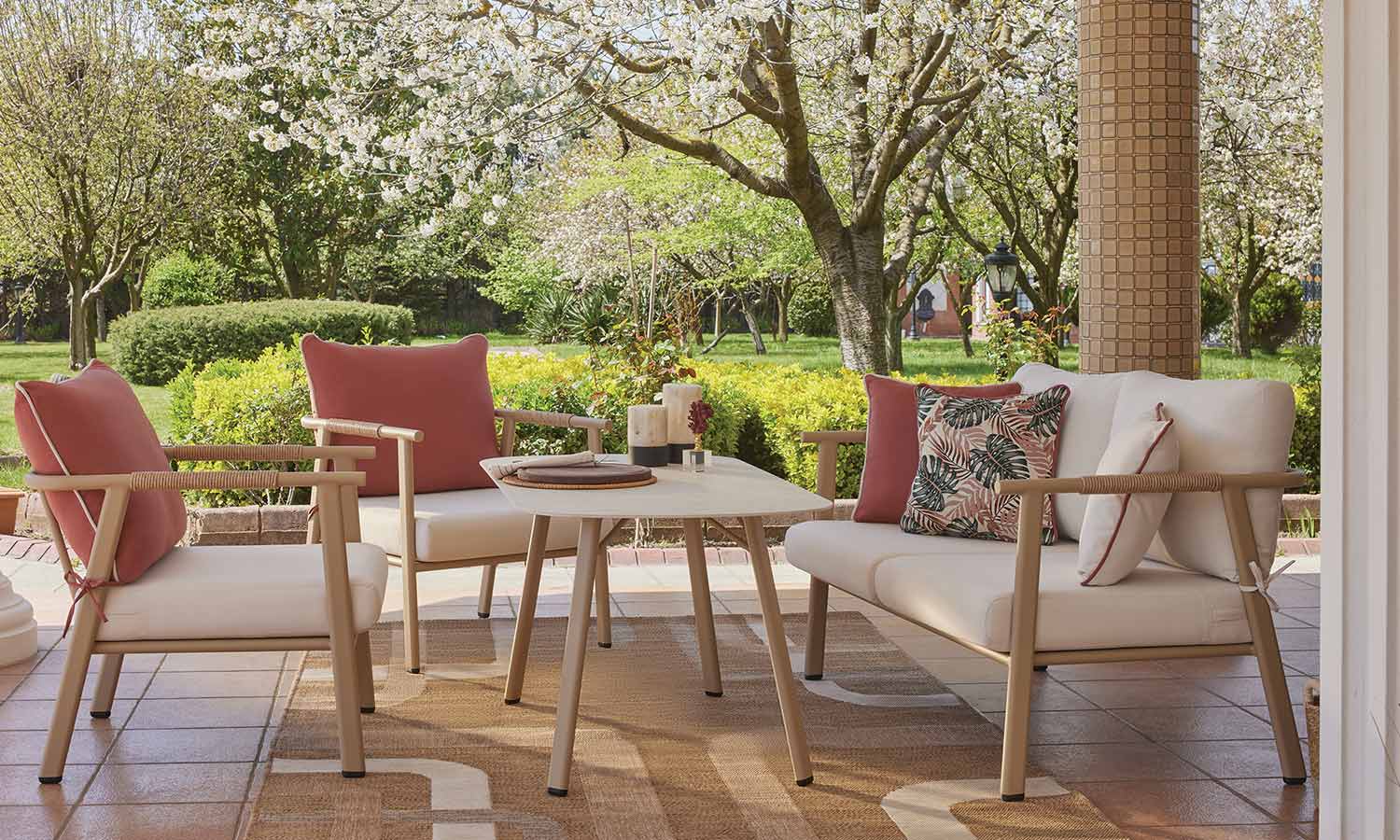 Doğal jüt görünümünde geometrik deseniyle Jardin Halı, toprak tonlarının sıcak enerjisiyle birleşiyor. Bahçe ve iç mekan kullanım alanları için uygun olan Jardin Halı, kaydırmaz tabanı ve yıkanabilir kumaşıyla kullanım kolaylığı sağlıyor.
