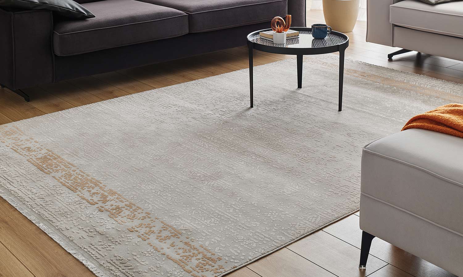 Modern ve etnik tarzı, bej renginin sıcaklığında buluşturan Monika Halı’nın özel tasarımı göz dolduruyor. Somon geçişli kabartmalı formu ile de mekanınıza zarif bir ambiyans katıyor.