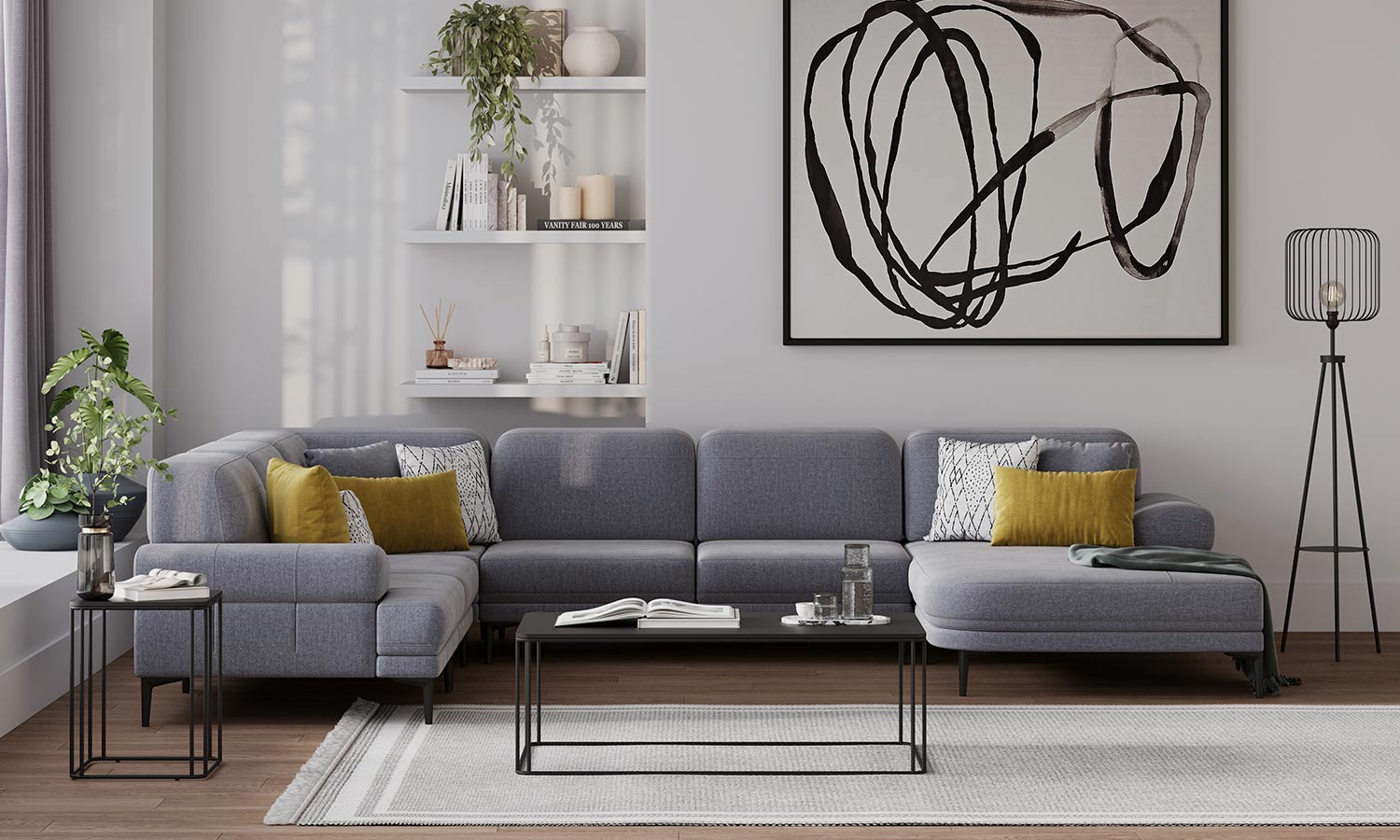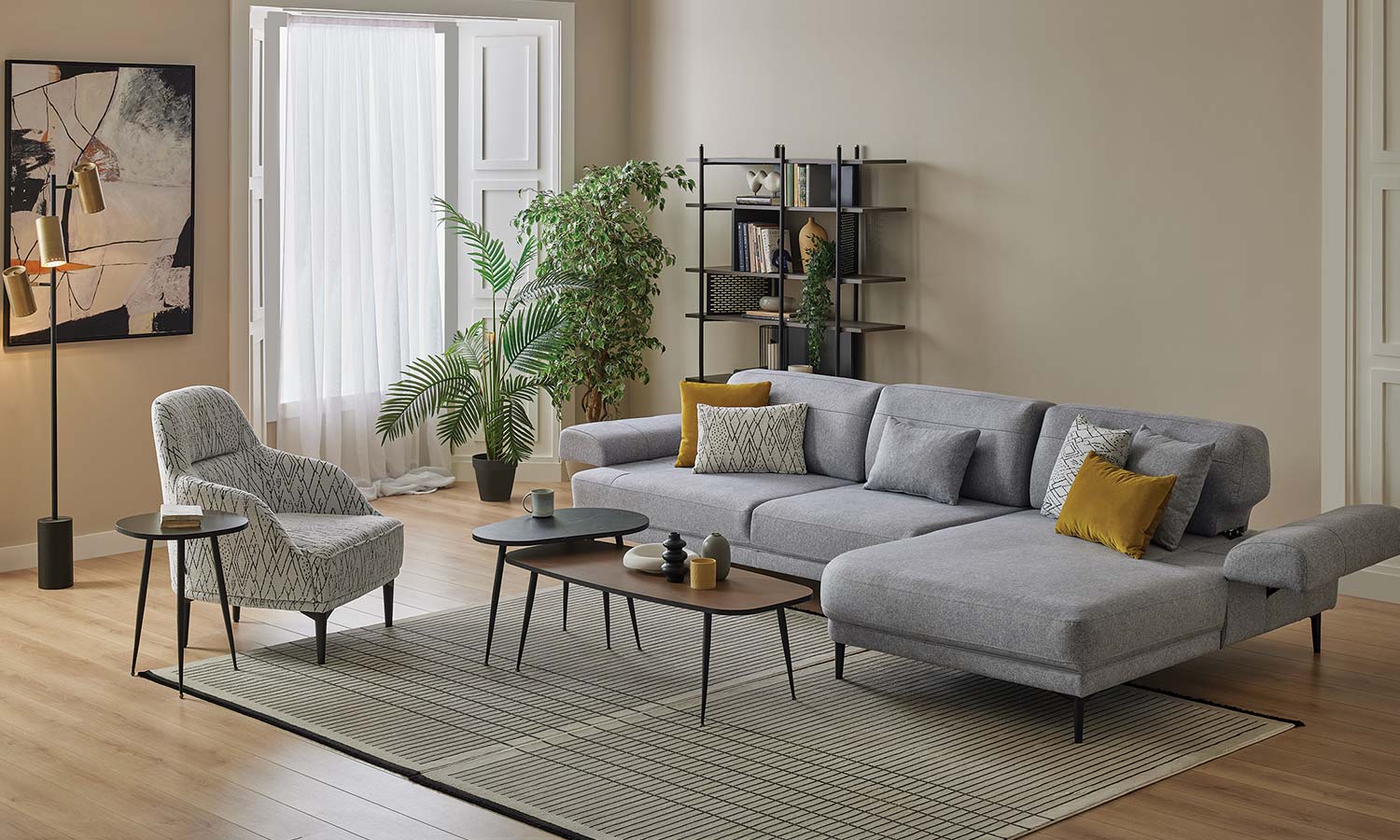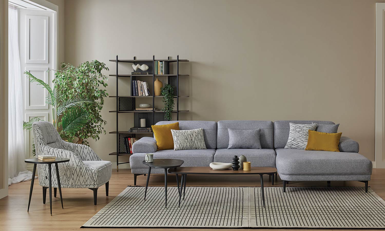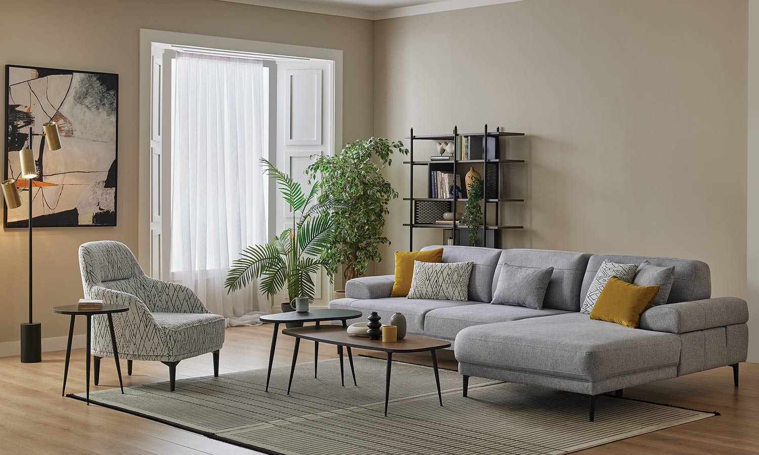 Modern tasarımı yeniden yorumlayan Brea Köşe Koltuk Takımı konforlu yapısıyla rahatlığı evinize getiriyor. Kadife ve keten türündeki kumaş kombinasyonlarıyla odanızda estetik bir hava yaratırken kolay açılır kapanır sırt ve kol mekanizmalı yatak olma özelliğiyle de kullanım avantajı sağlıyor. Modüler yapısıyla takımın her bir parçasını dilediğiniz şekilde kullanabilme şansı sunuyor. Kolay temizlik imkanı sağlayan kumaş özelliği ve siyah renkli yüksek ayak yapısıyla fonksiyonel bir kullanım sağlıyor.