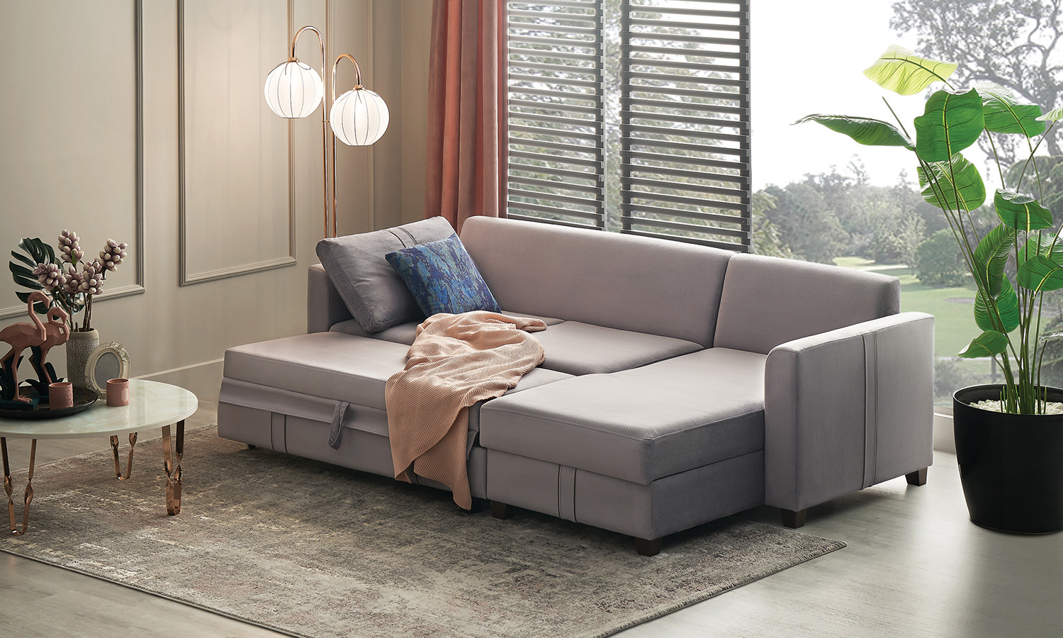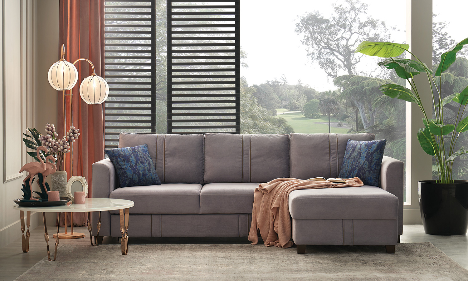 Geleneksel güzelliğiyle, modern hatlarıyla şık bir keyif köşesi. Otto Köşe Takımı, kumaş kombinasyonları ile uyumlu biye detayları ile ev dekorasyonuna yepyeni bir yorum getiriyor. Tasarımına özgü şık görselliğini, kolay açılır kapanır yatak fonksiyonu ve geniş depolama imkanı sağlayan sandık özelliği ile buluşturuyor. Sağ ya da solda kullanılabilen uzanma modülü ile her mekana uyum sağlıyor.