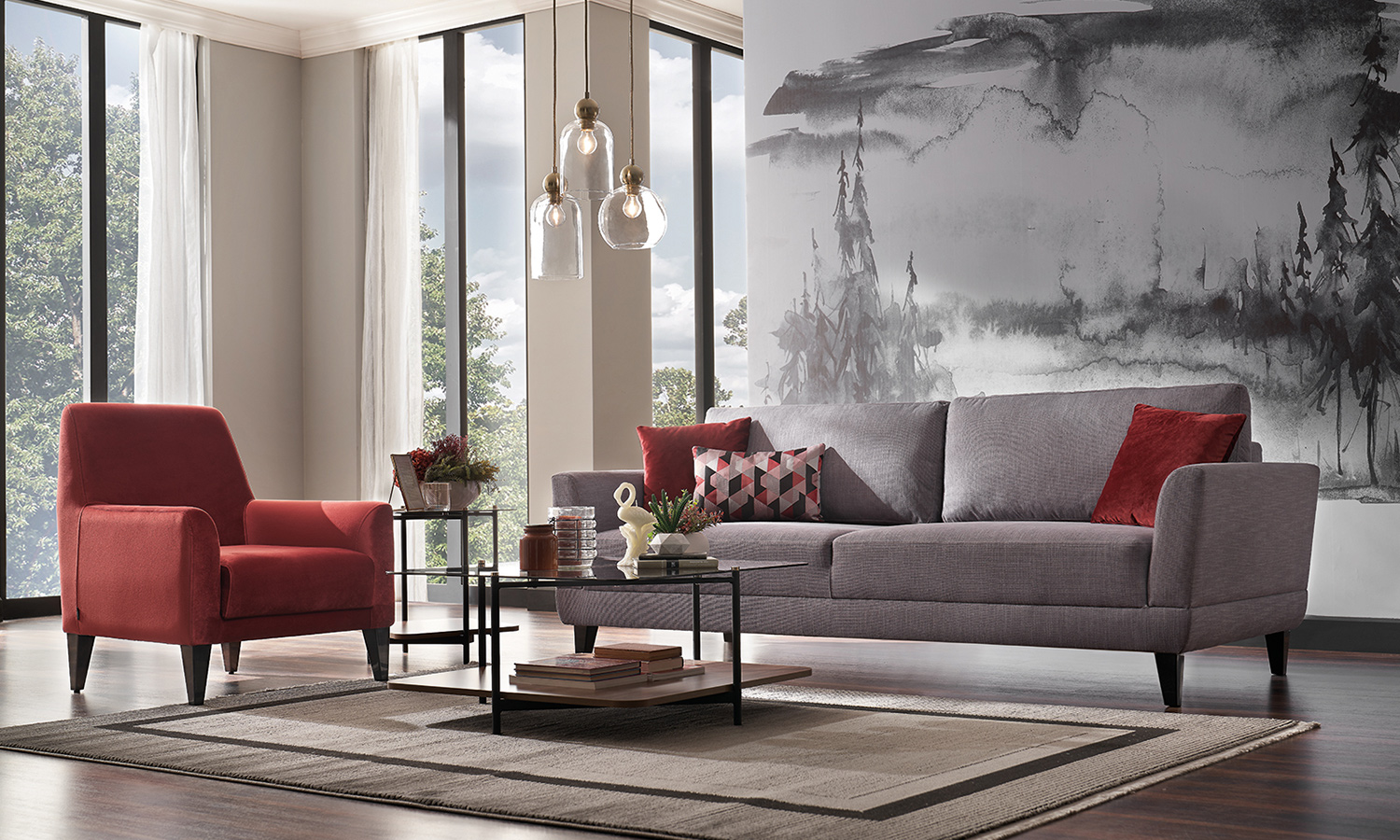 Takımı, sırtı destekleyen konforlu oturumuyla dikkat çekiyor. Deco Koltuk Takımı, koltukta fonksiyonelliği ve kullanım kolaylığını ön plana çıkaran Sofayat Koltuk Serisi ürünüdür. Sofayat, açıldığında ekstra geniş yatak olma özelliğiyle siz ve konuklarınız için gerçek bir yatak konforunda uyku sağlar. Ekstra kullanım alanı sunan sandık özelliğiyle her zaman düzenli, modern ve daha geniş bir yaşam alanına kavuşmanıza imkan tanır. Zengin kumaş kombinasyonları, beyaz, ceviz ve siyah ayak renk seçenekleri ile bir çok farklı alternatif sunuyor.