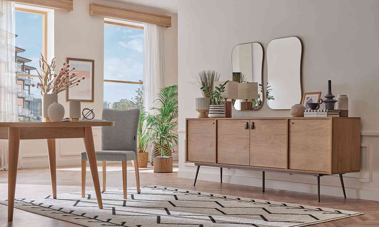 Açık tonlarda ahşap rengi ve modern tasarımıyla Helis Yemek Odası, keyifli sofraların vazgeçilmezi. Kahverengi deri kulp üzerindeki beyaz dikişleri ve eskitme bronz kaplamasıyla evinize yenilik katarken farklı ölçülerdeki konsol çeşitleri ile alternatif depolama çözümü sunuyor. Yuvarlak masa ile birlikte diğer 2 farklı masa alternatifiyle farklı yaşam alanlarına uyum sağlıyor.