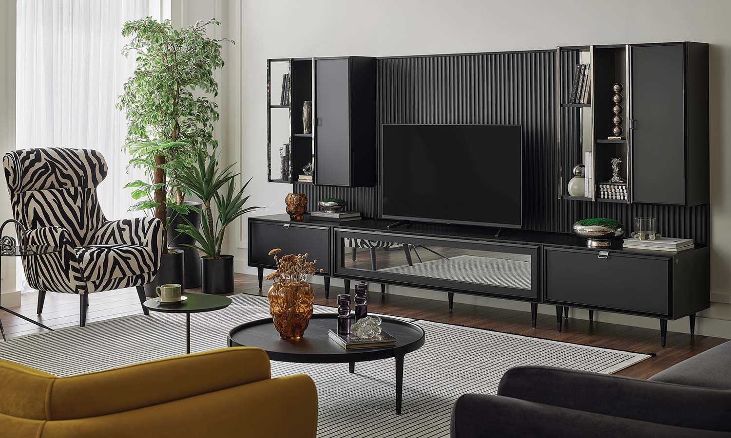 • Seriyle uyumlu açık raflı ve kapaklı seçenekleri ile TV üst modülleri