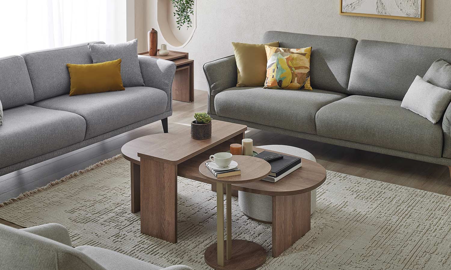 İki farklı orta sehpa alternatifi dekorasyon tarzınıza göre kombinleme özgürlüğü tanırken metal ayaklı C sehpa modern yaşamın pratik çözümlerinden biri olarak öne çıkıyor. Zigon sehpa alternatifi dar alanlarda işlevselliği artırıyor. Puf seçenekleriyle desteklenen tasarım yaşam alanınıza hem konfor hem de estetik getiriyor.