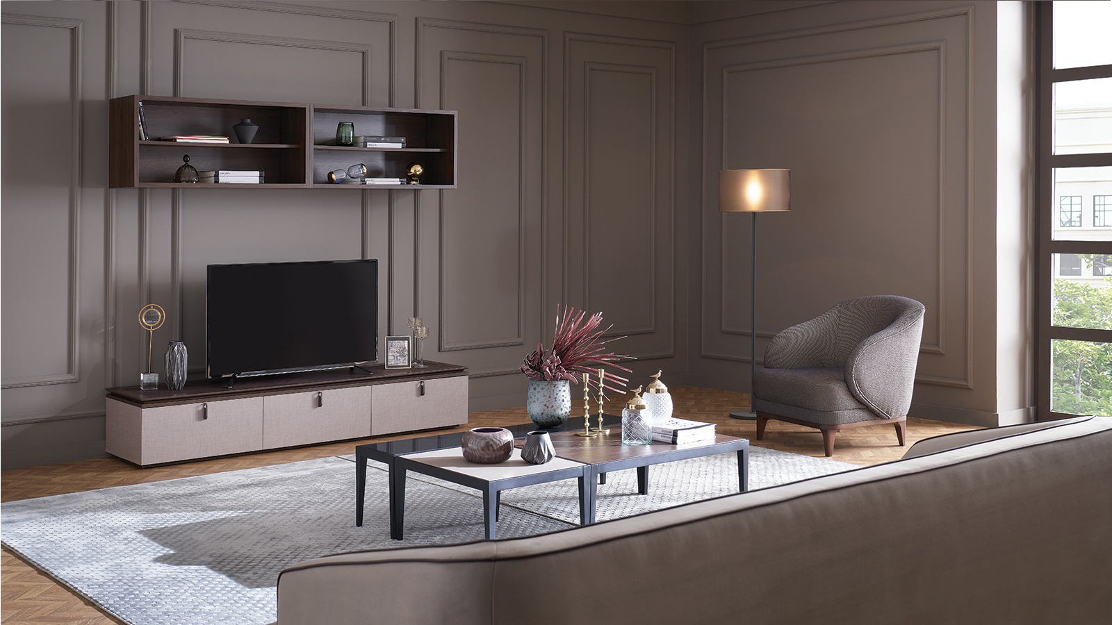 Modern görünümüyle yaşam alanlarında çekim noktası oluşturan Talin TV Ünitesi, modül çeşitliliği ile size özgü kombinasyonlar fırsatı sunarak salonunuzu başkalaştırıyor. Her eve ve her zevke göre yapılacak kombinasyonlar ile bambaşka TV Üniteleri yaratılıyor. Cam kapaklı ve kapaklı yan dolapları, iki farklı boyuttaki üst raf seçeneği ile kullanışlı depolama alanları sağlayarak, her yönüyle keyifli ve modern tasarımının iddiasını öne çıkarıyor. Bazalı ve ayaklı olmak üzere iki TV Sehpası alternatifiyle evinize en uygun parçayı seçmenizi sağlıyor. En keyifli zamanları geçireceğiniz Talin TV Ünitesi fonksiyonelliği ve zamansız çizgileri ile size özel alanlar sunuyor.