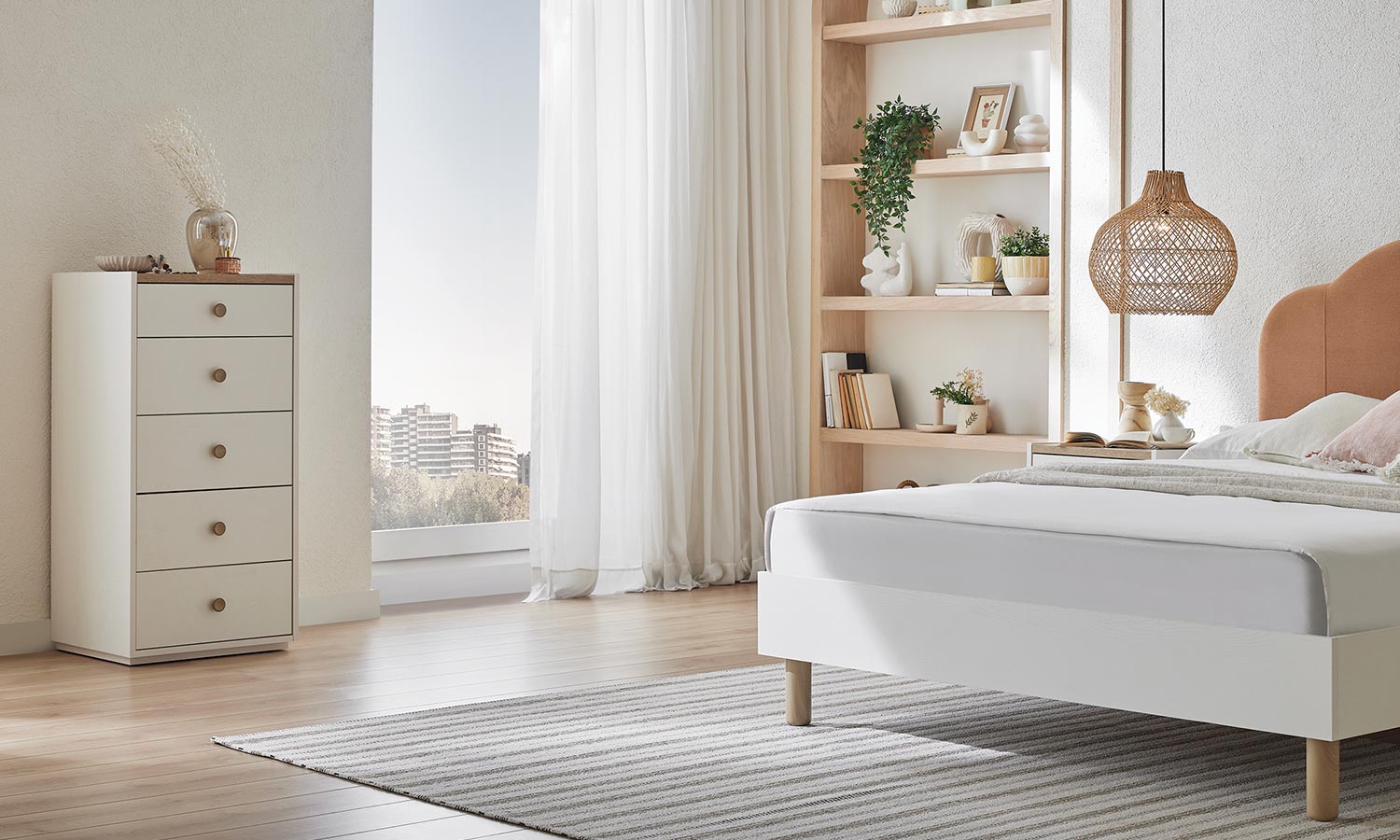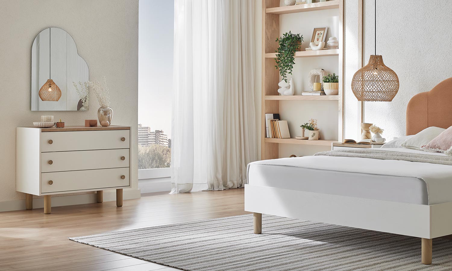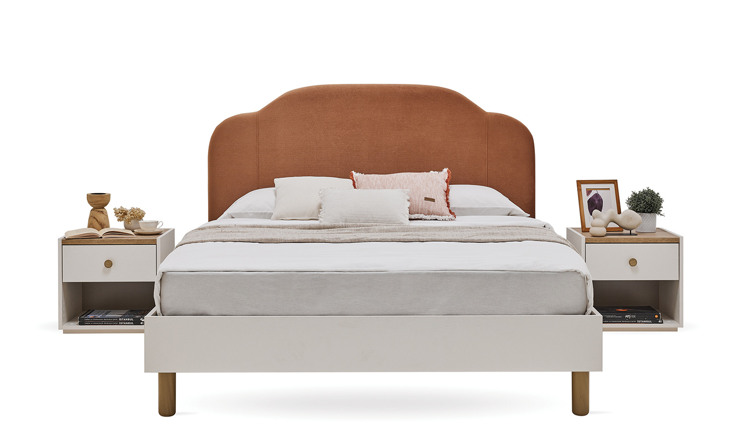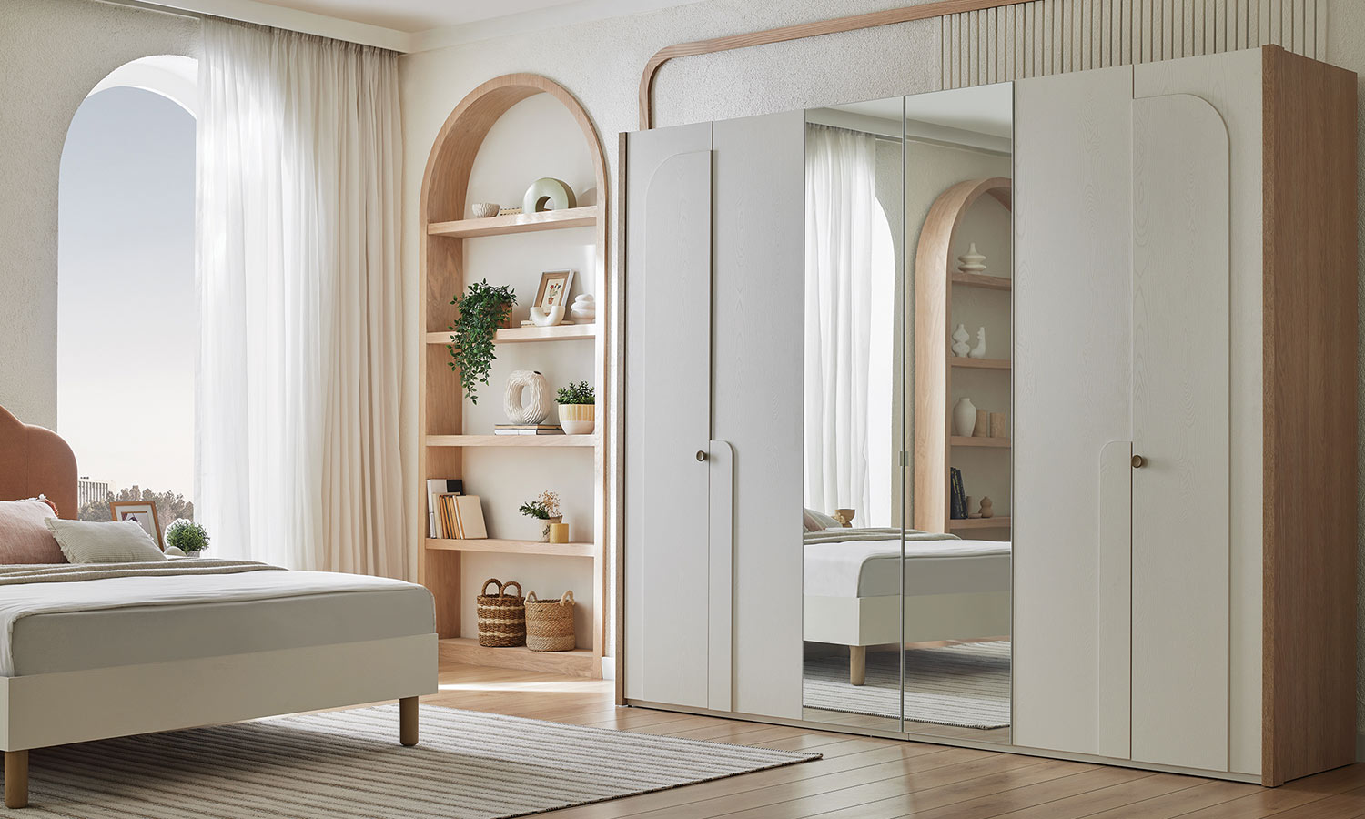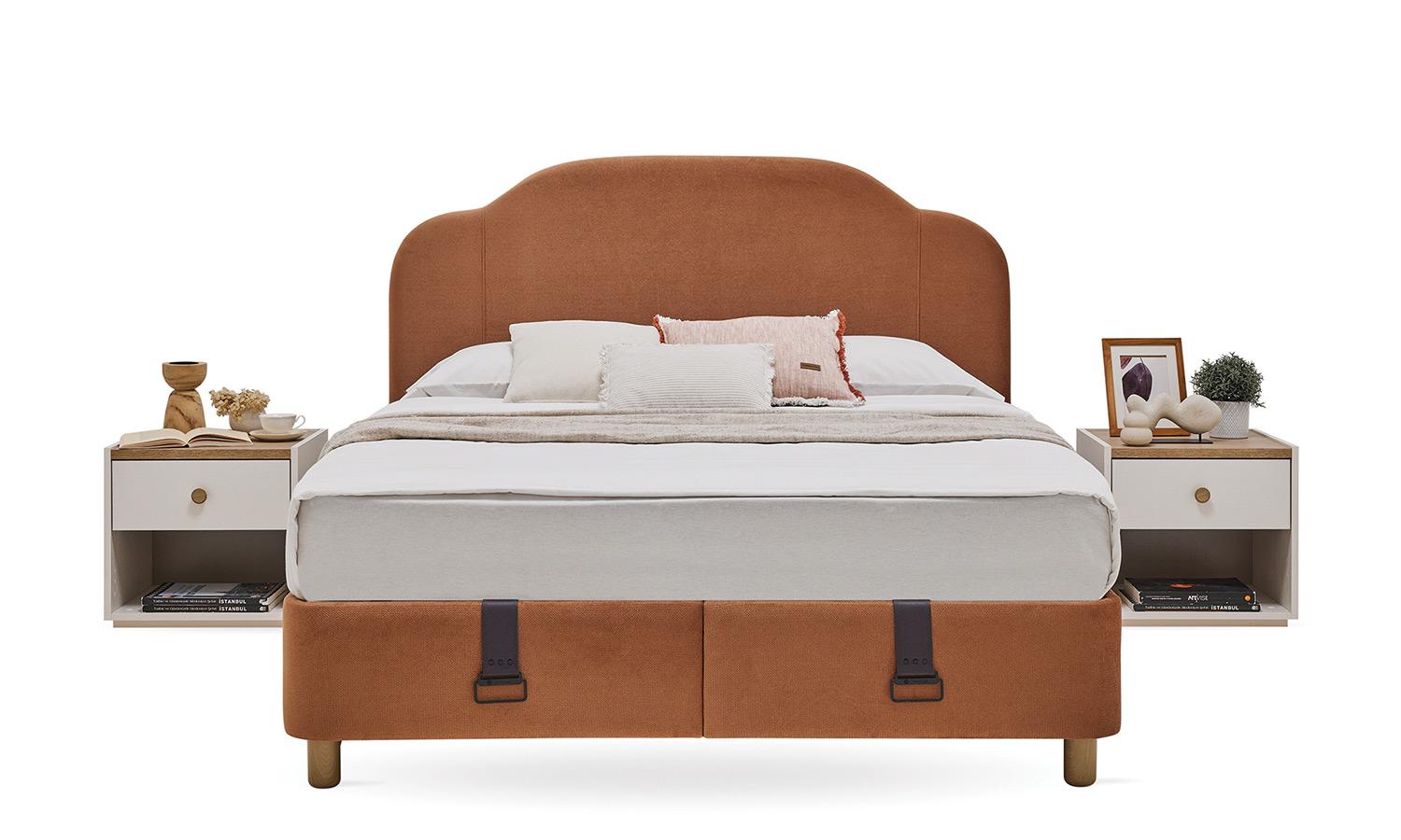 Bej ve meşe tonlarının huzur veren birlikteliğini yansıtan Kozy Yatak Odası, oval hatlar ve kemerli formlarla estetik bir bütünlük sağlıyor. Boy aynasının arkasında yer alan aksesuarlık fonksiyonelliği artırırken şifonyer alternatifleriyle her ihtiyaca uygun çözümler sunuyor. Yüksek şifonyer modeli modern depolama anlayışını bohem bir çizgide yorumlayarak yatak odanıza hem düzen hem de estetik katıyor.