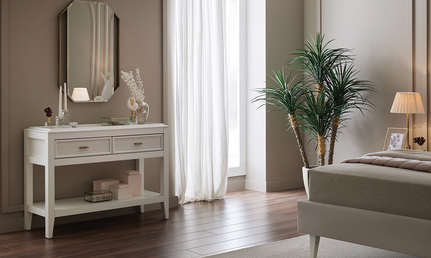 • Koleksiyon tarzını yansıtan konsol ile ortak kullanıma sahip şifonyer aynası