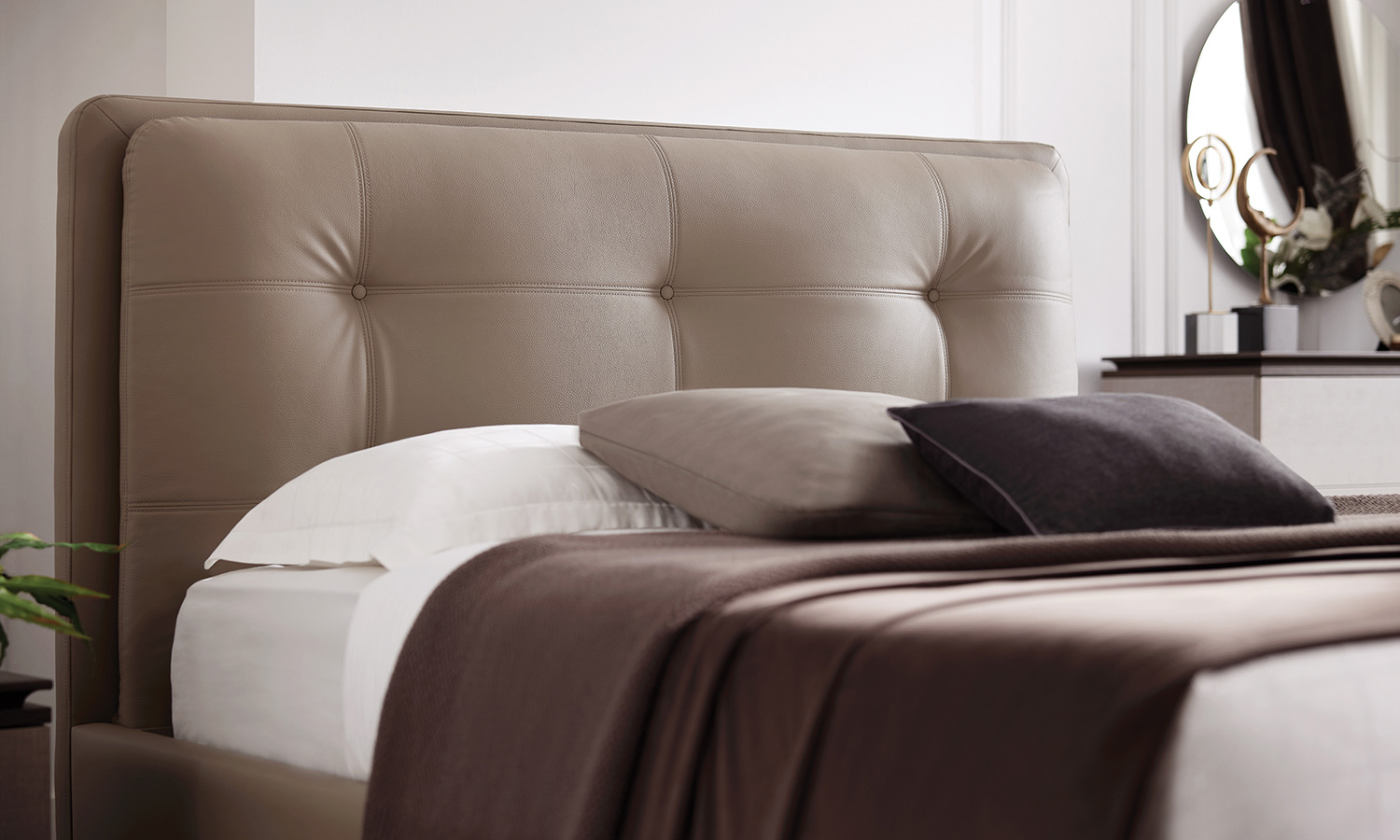 Farklılığın harmonisinden doğan tasarımıyla Talin Yatak Odası, sizlere şehrin en konforlu ve modern dinlenme alanını sunuyor. Özgün formlarıyla dikkat çeken tasarımını farklı renk kombinasyonuyla tamamlıyor. Deri kapitone karyola başlığı ile modern tasarımını daha da güçlendirirken, keten görünümlü doku, vizon ve ceviz rengini bir araya getiriyor. Üç farklı dolap seçeneğiyle her türlü yaşam alanına uyum sağlıyor.