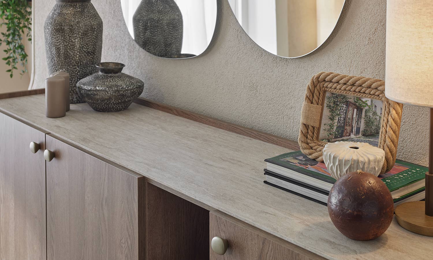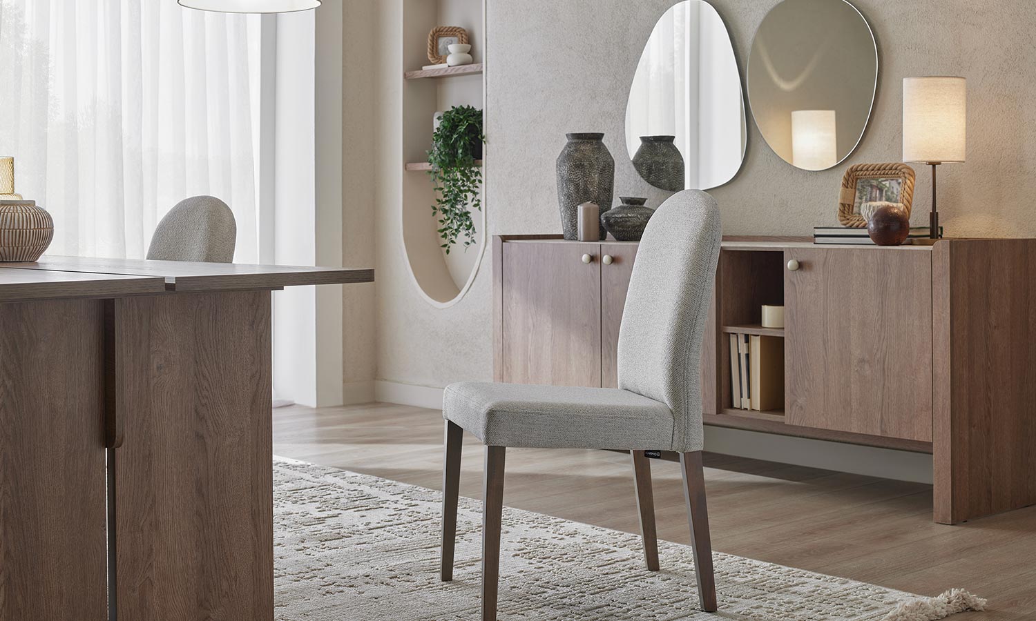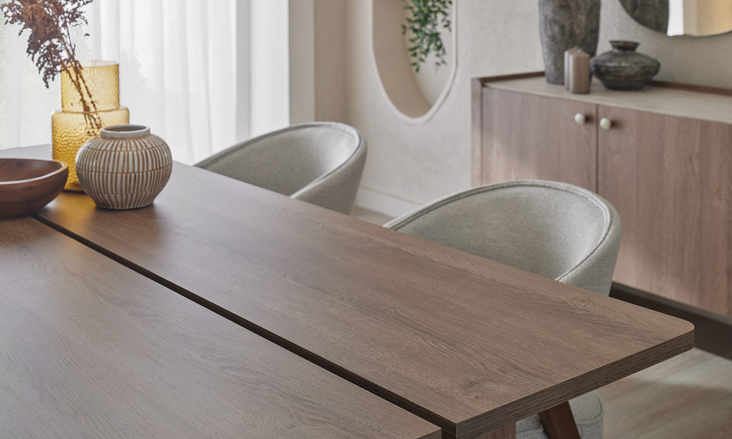 Doğallığın yalın bir çizgiyle buluştuğu Veneta Yemek Odası Takımı güçlü bir karakter ortaya koyuyor. Ceviz ve travertenin uyumu modern tasarımla harmanlanarak mekâna sade ama sıcak bir atmosfer kazandırıyor. Metalik vizon tonlarındaki kulplar ve güçlü ayak yapısı koleksiyonun modern duruşunu pekiştiriyor.